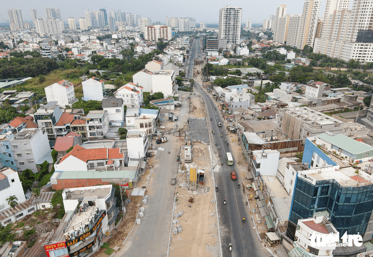 Đường Lương Định Của (gần giao lộ với đường Trần Não) thi công 8 năm chưa xong vì vướng mặt bằng – Ảnh: CHÂU TUẤN