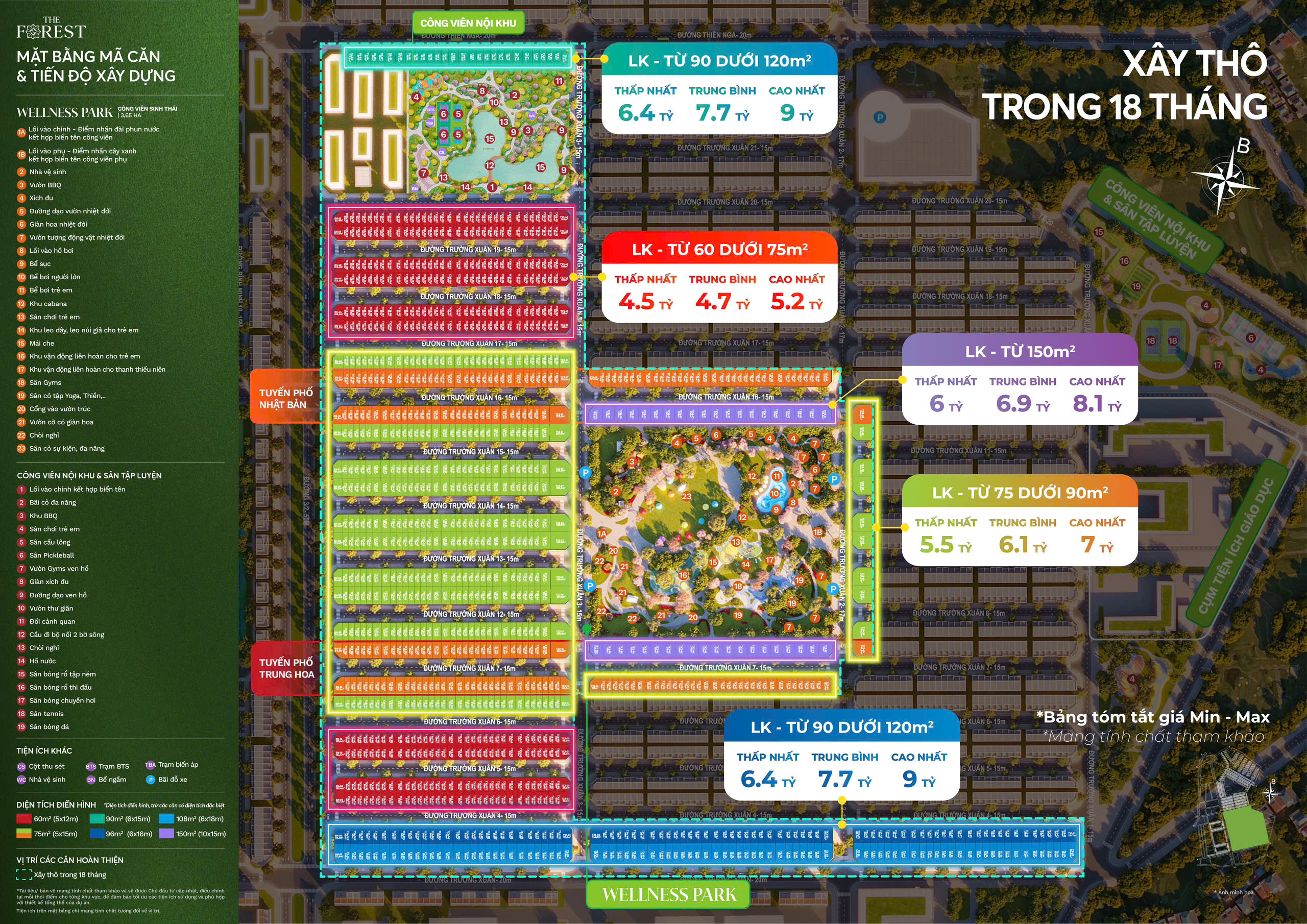 + TT chuẩn 18 tháng: CK 4.5%/ giá trị tiền đất & CK dòng tiền 11%/ năm/ số ngày TT trước hạn của tiền đất (nếu những đợt KH có nhu cầu TT trước hạn).