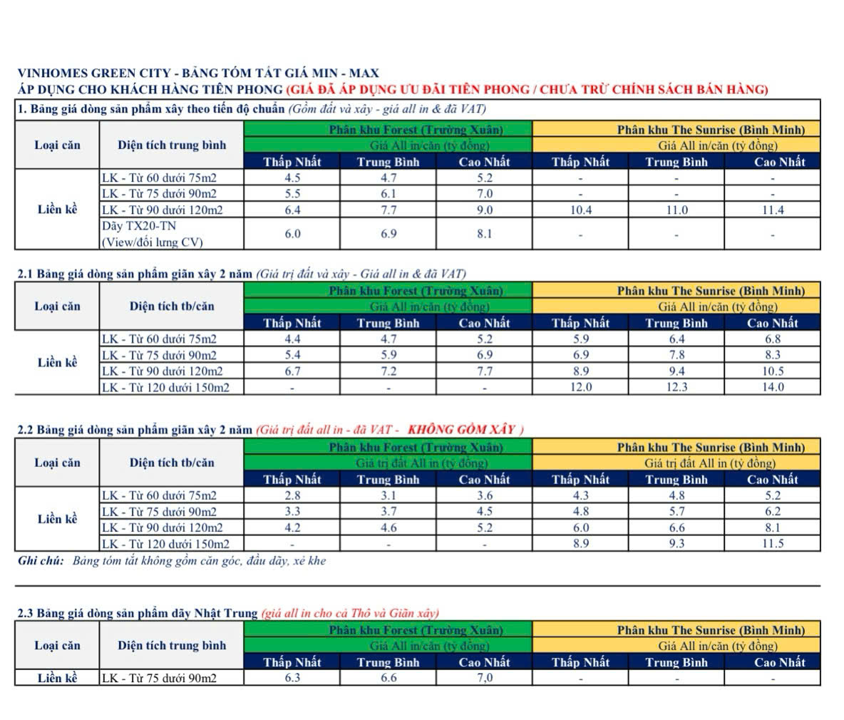 + TT nhanh 100%: 9.5%/ giá trị tiền đất + CK dòng tiền 11%/ năm/ số ngày TT trước hạn so với lịch TT chuẩn của tiền đất (đâu đó được tầm 3-5%).