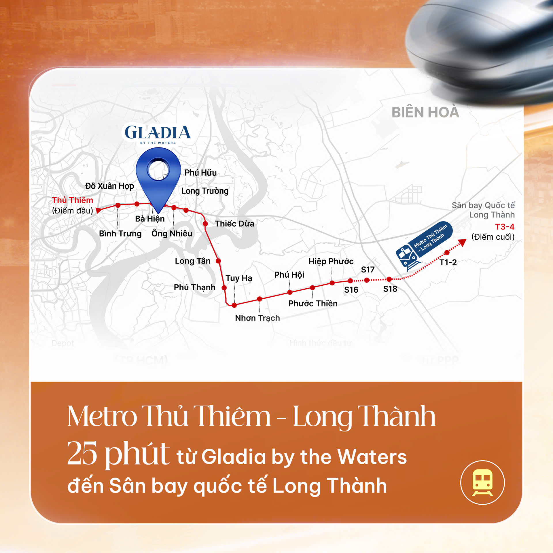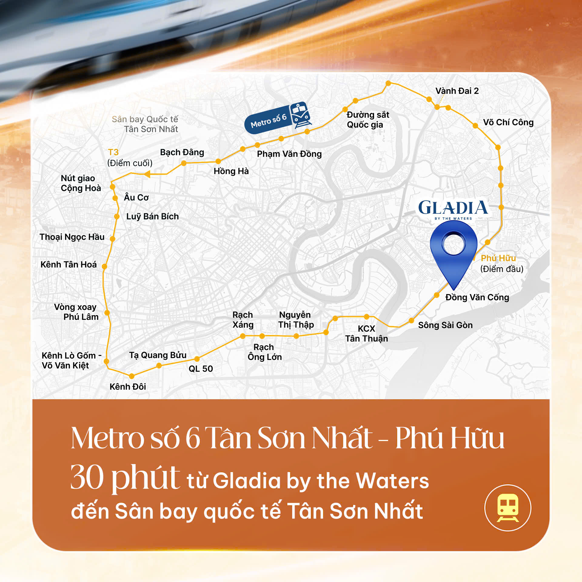 Nằm tại tâm điểm kết nối khu Đông TP.HCM, Gladia by the Waters – khu biệt thự đẳng cấp bên sông đang hưởng lợi trực tiếp từ quy hoạch hai tuyến metro chiến lược kết nối trung tâm thành phố với các sân bay quốc tế.